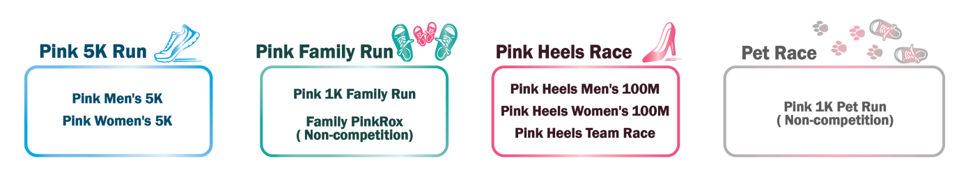 PinkRun.HK (formerly known as Pink Heels Race) is an annual charitable event organized by Hong Kong Hereditary Breast Cancer Family Registry (named as ‘The Registry’ in the below) It aims to promote knowledge and risk awareness of hereditary breast, ovarian and prostate cancers caused by BRCA gene mutation, and also to raise fund for supporting the underserved high-risk families by undergoing BRCA testing and genetic counseling services in the community.